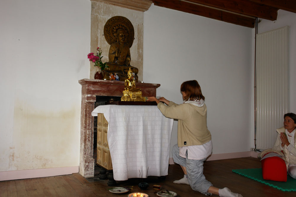 C’est un petit groupe de quatre méditants qui s’est réuni autour d’Hildegard Huber assistée de Nathalie dans cette jolie maison à Bazoin, au cœur des marais de la Venise Verte, un endroit magnifique pour cette retraite composée uniquement de débutants en vipassana.